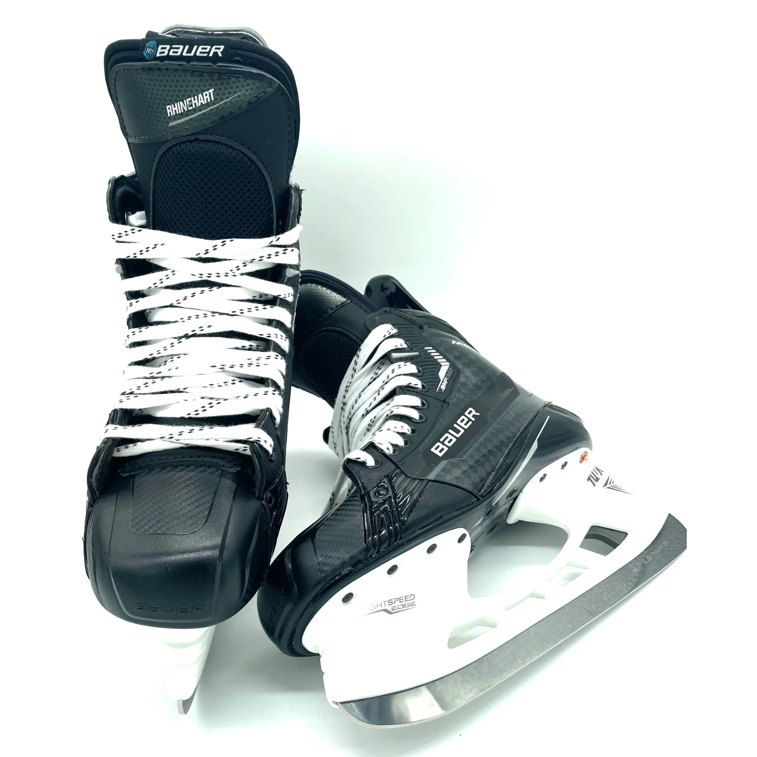 Bauer Supreme Mach skates from an AHL team. Size L9.75 R10 with 288 Tuuk holders and LS Pulse steel.