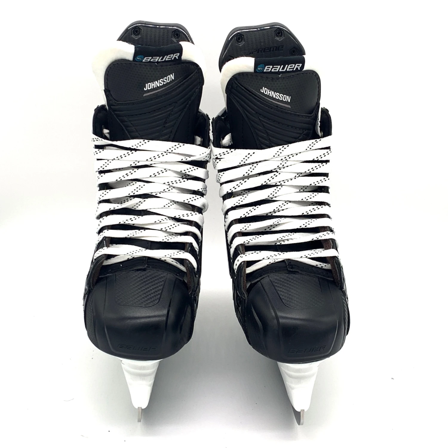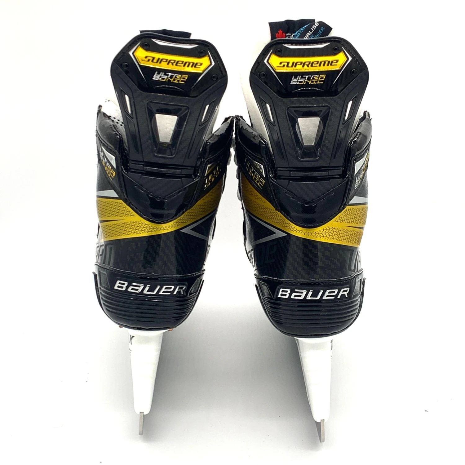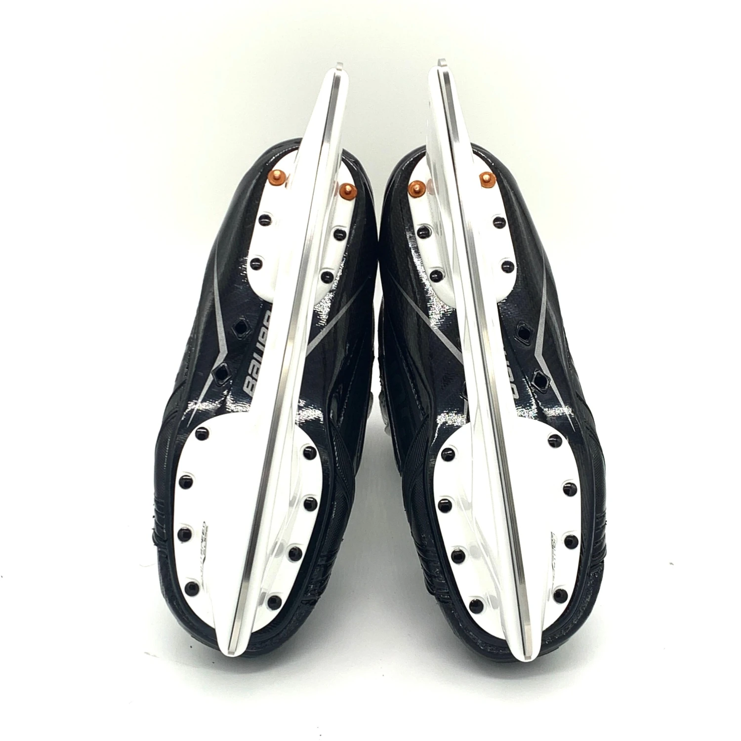Bauer Supreme Ultrasonic skates from a Pro locker room. Left skate size 8.25C and right skate size 8C with 272 Tuuk Lightspeed Edge holders and LS Pulse TI steel.