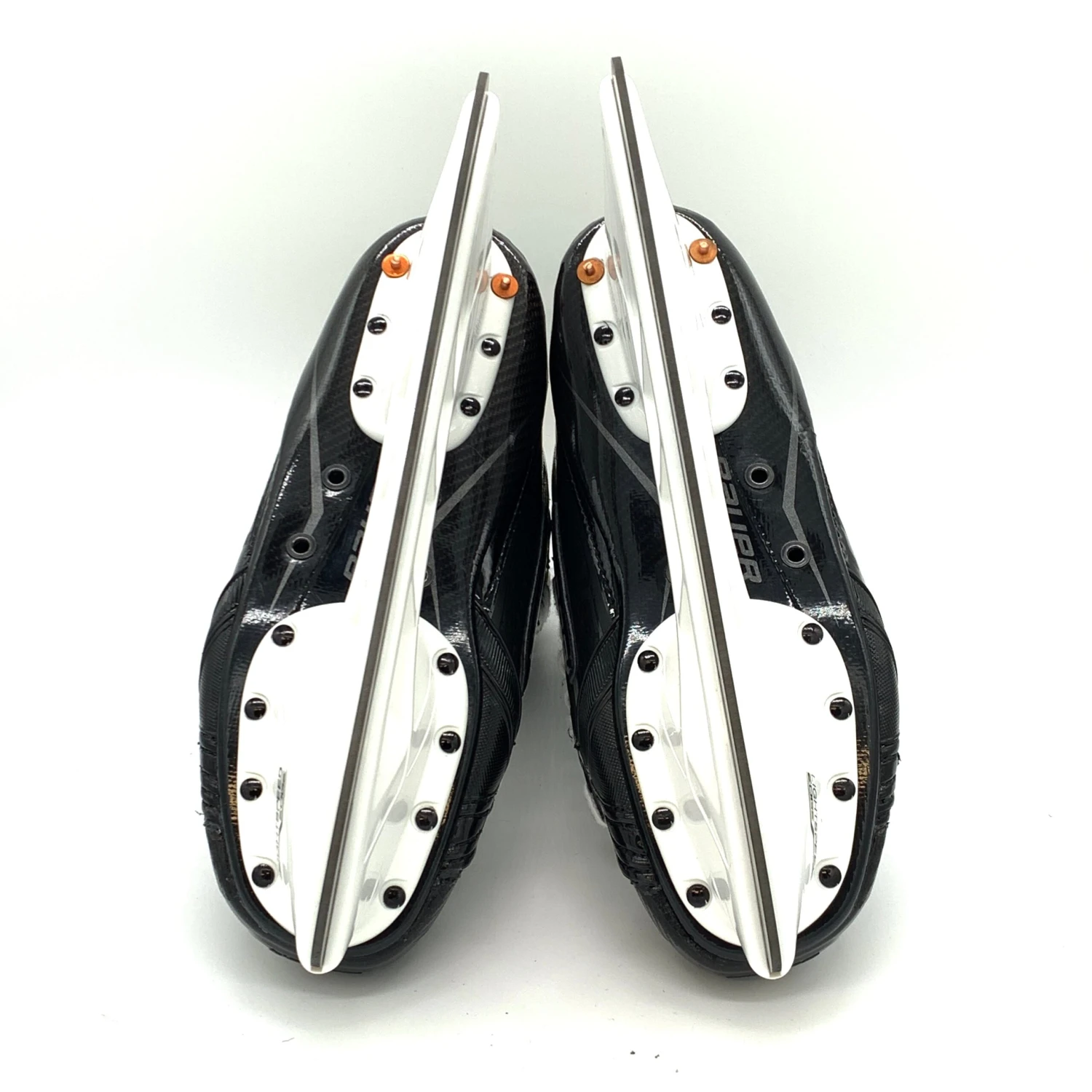 Bauer Supreme Ultrasonic skates from an NCAA team. Size 6.75D with 263 Tuuk Lightspeed Edge holders and LS5 steel. These skates feature “Beck” custom printed on the tongue.