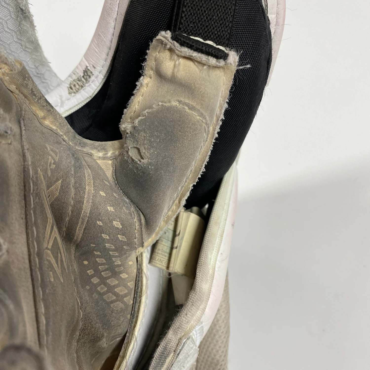 **Note: Though HockeyStickMan tries to represent the size as best as possible there may be some discrepancies as pro stock equipment is full custom and may not align with standard sizing. Similarly, HockeyStickMan does its best to describe the equipment condition and point out obvious flaws; however this is used equipment – issues can be missed and the equipment is sold as is. Feel free to ask if you have any questions about size or condition and we will answer to the best of our ability**