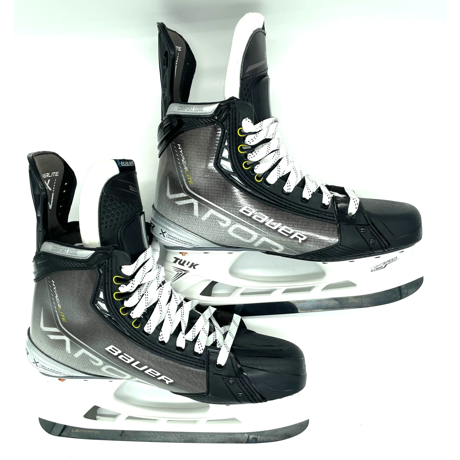Bauer Vapor Hyperlite skates from an AHL team. Size L11.125 R10.5 with 296 Tuuk holders and LS Pulse TI steel.