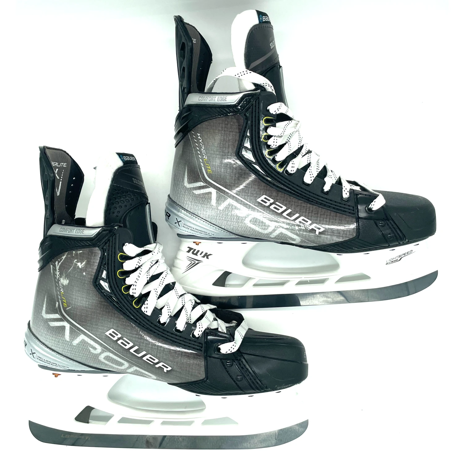 Bauer Vapor Hyperlite skates from an AHL team. Size L11 R10.125 with 296 Tuuk holders and LS Pulse TI steel. There is minor wear on the boot from shipping but these skates have never seen on ice action.Â