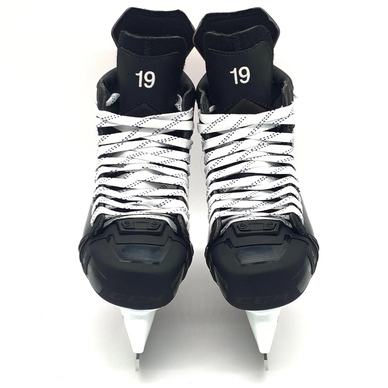 CCM Jetspeed FT4 Pro hockey skates from Dawson Mercer of the New Jersey Devild. Left size 8.5D right size 8.25D with 280Â XS holders and Step steel. These skates have custom 19 on the tongues.
