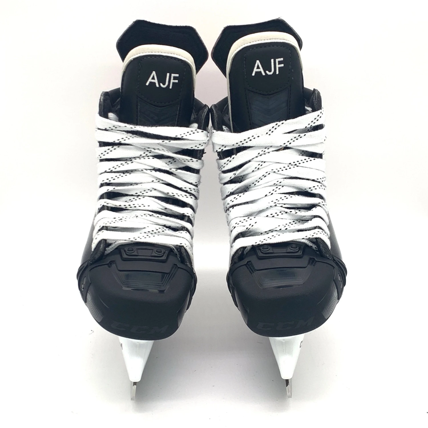 CCM Jetspeed FT4 Pro hockey skates from the Washington Capitals of the NHL. Size 8.5D with 271 XS CCM holders and Step steel. These skates have a custom “AJF” stitched on the tongues.