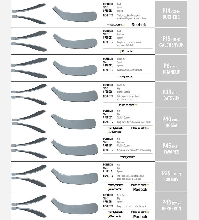 | Stick Specifications | Left – P29 (Crosby) – 85 Flex (Blade 1), Left – P29 (Crosby) – 100 Flex (Blade 1), Left – P14 Custom – 90 Flex/Sandpaper Grip (Blade 3 Custom), Left – P6M (Phaneuf) – 100 Flex/Max Blade/64" (Blade 4), Left – P19 (Nugent-Hopkins) – 100 Flex (Blade 10), Left – P46 (Bergeron) – 85 Flex (Blade 11), Left – Custom Heel – 100 Flex (Custom), Left – P19 (Nugent-Hopkins) – 90 Flex/64" (Blade 10), Left – P6M (Phaneuf) – 95 Flex/Max Blade/64" (Blade 4), Left – P02C (Lidstrom) – 100 Flex (Custom) |