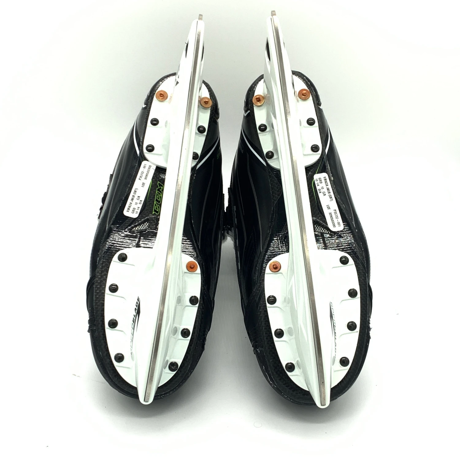 Pro stock CCM RibCor 70K skates from Jakub Voracek from his time with the Philadelphia Flyers. Left size 10C right size 10.25D with 287 CCM XS holders and XS1 steel. These skates have 93 custom stitched on the tongues.