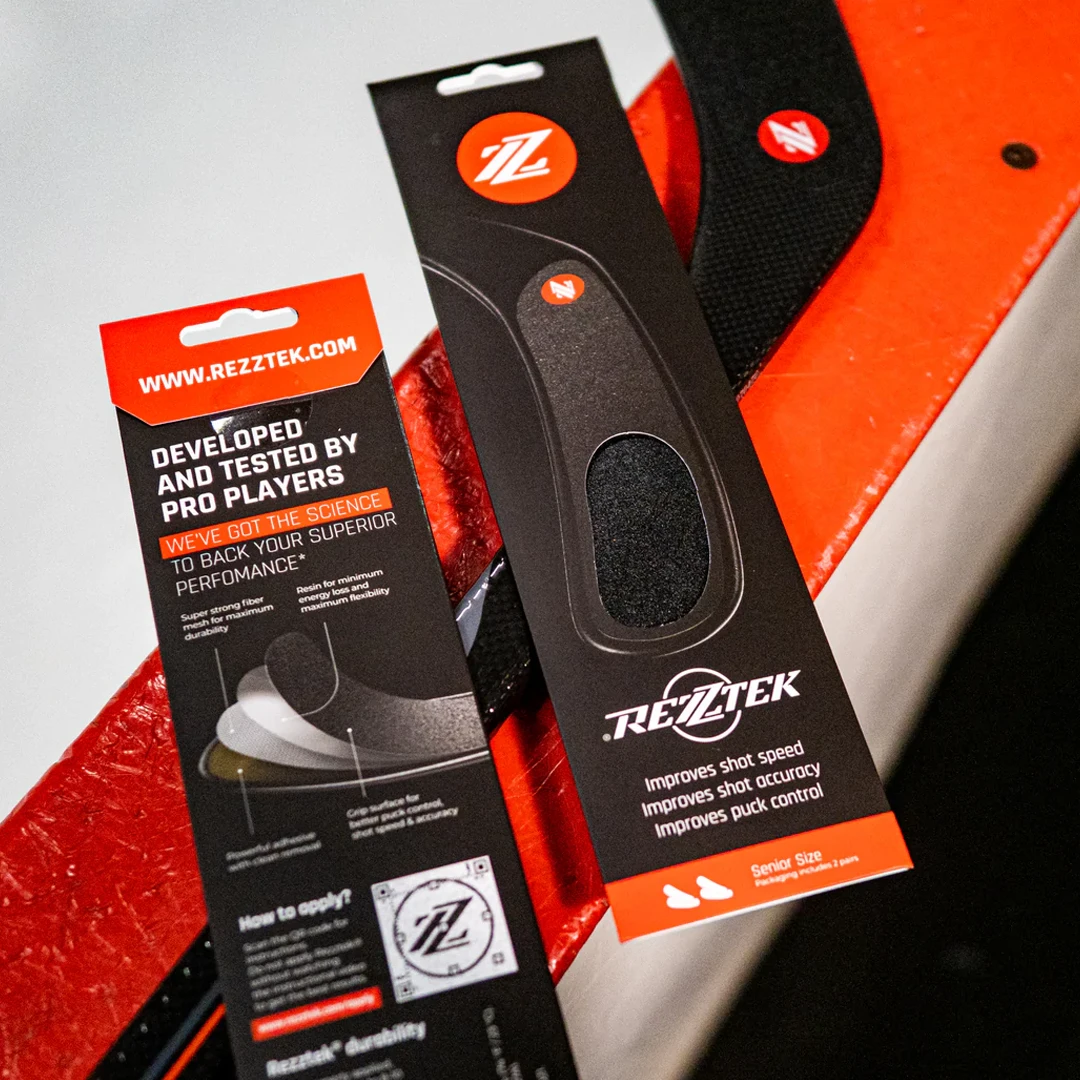 We started noticing Rezzteks show up on used sticks we’d get from pro teams a few seasons ago, and now it seems like they’re everywhere. Rezztek’s blade grips are an alternative to conventional cloth hockey tape. Meant for high performance, the unique sandpaper grip will repel water and help put some extra oomph in your shot.